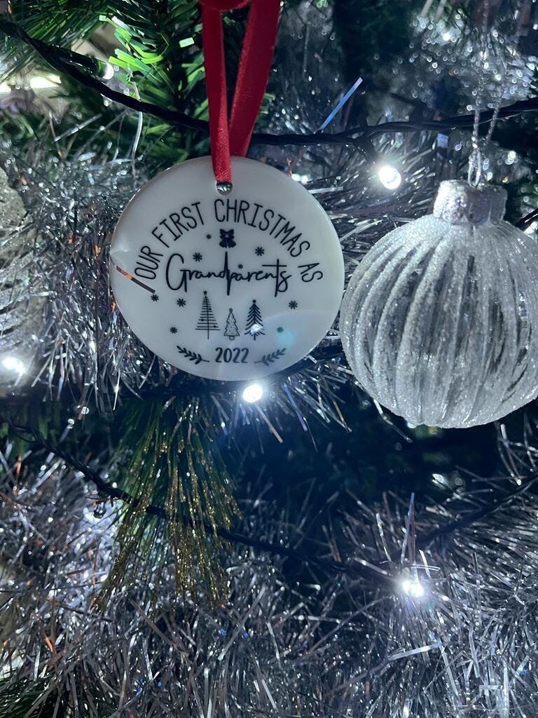 A thoughtful keepsake for proud new grandparents celebrating their first Christmas together with a grandchild.