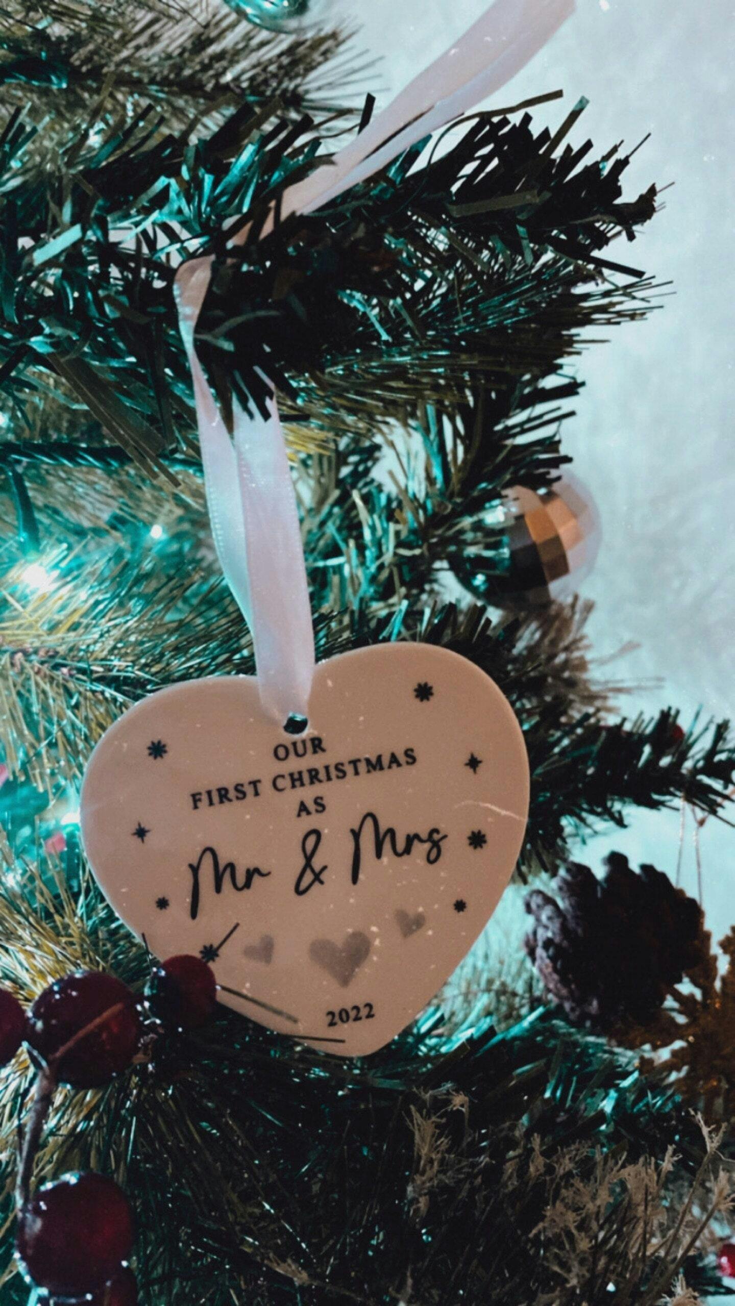 Celebrate your first Christmas as Mr & Mrs - order your ceramic heart ornament today!