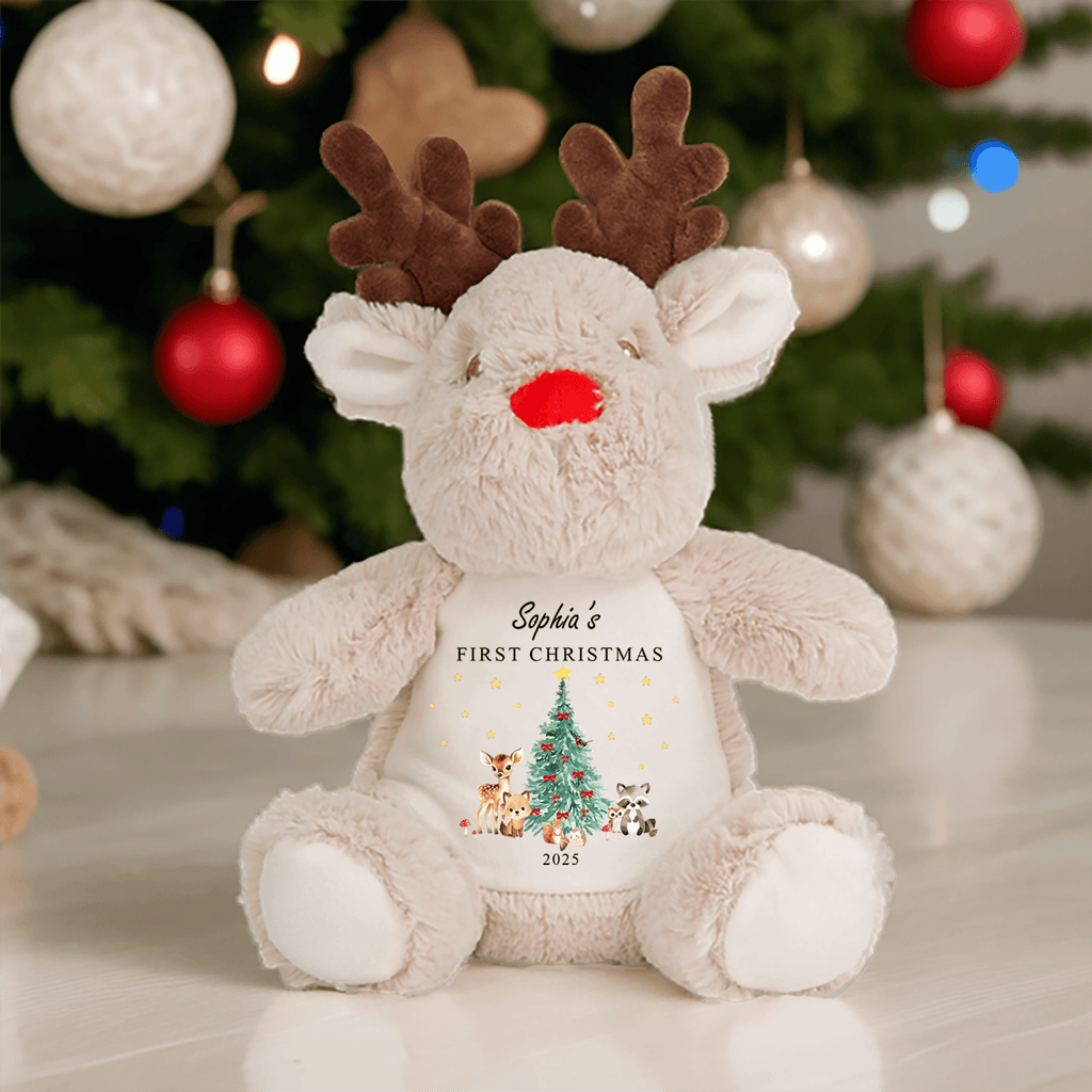 Mark your baby’s first Christmas with a personalised reindeer teddy that captures the magic of the season.