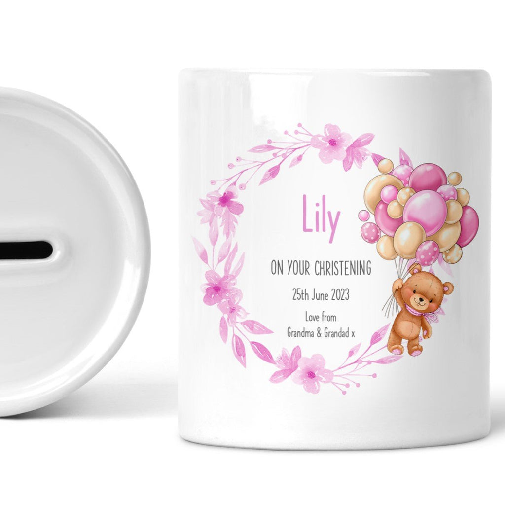 Personalised Christening Money Box with Baby's name, Christening date & gift message.
