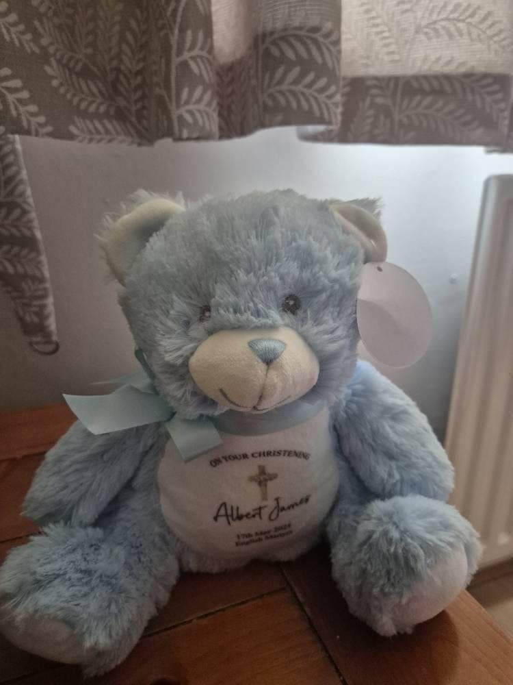 • Personalised Gift – Our lovely Teddy Bear soft toy is customisable; add any name, date & church to make your gift even more special.