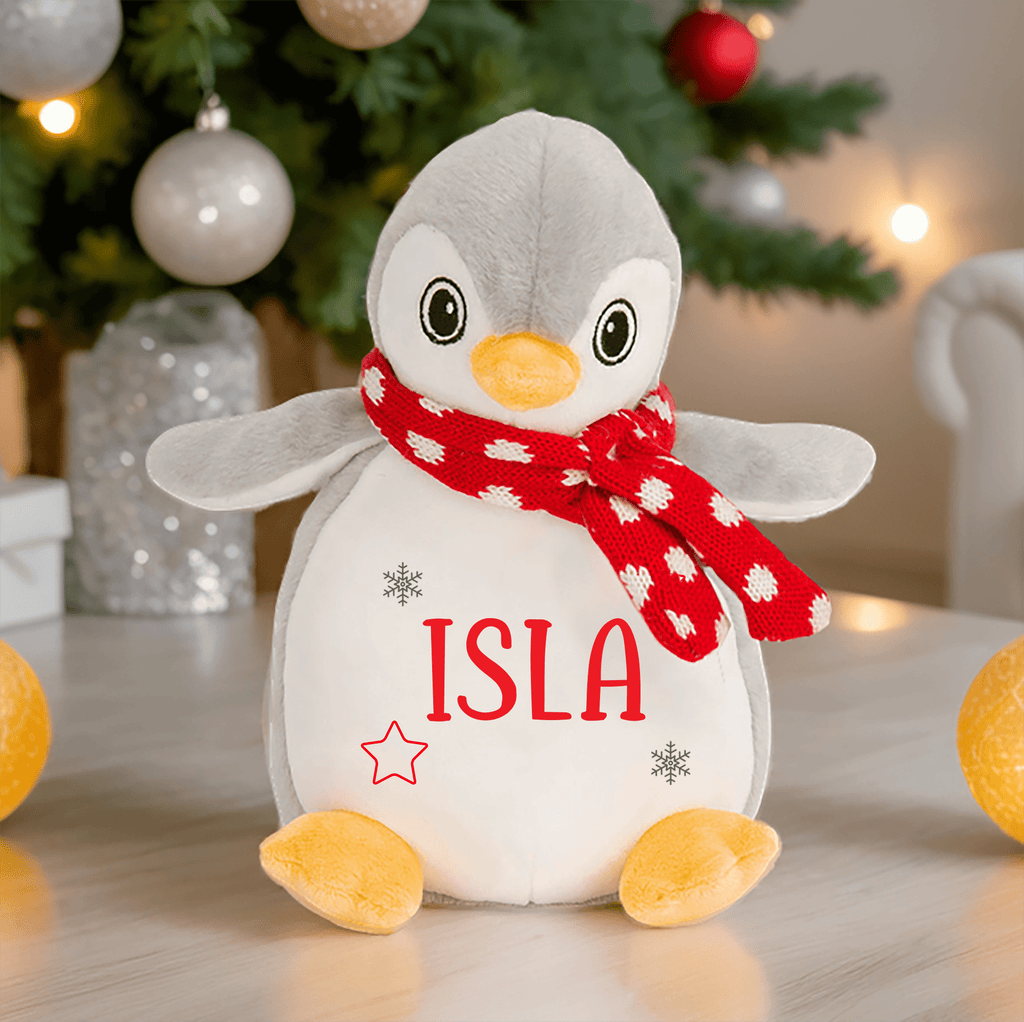Celebrate the magic of the season with this adorable Personalised Penguin Teddy, a soft and cuddly companion that’s perfect for children and festive décor alike. Each penguin features a professionally printed name design, making it a thoughtful gift for little ones or a charming addition to your Christmas display.