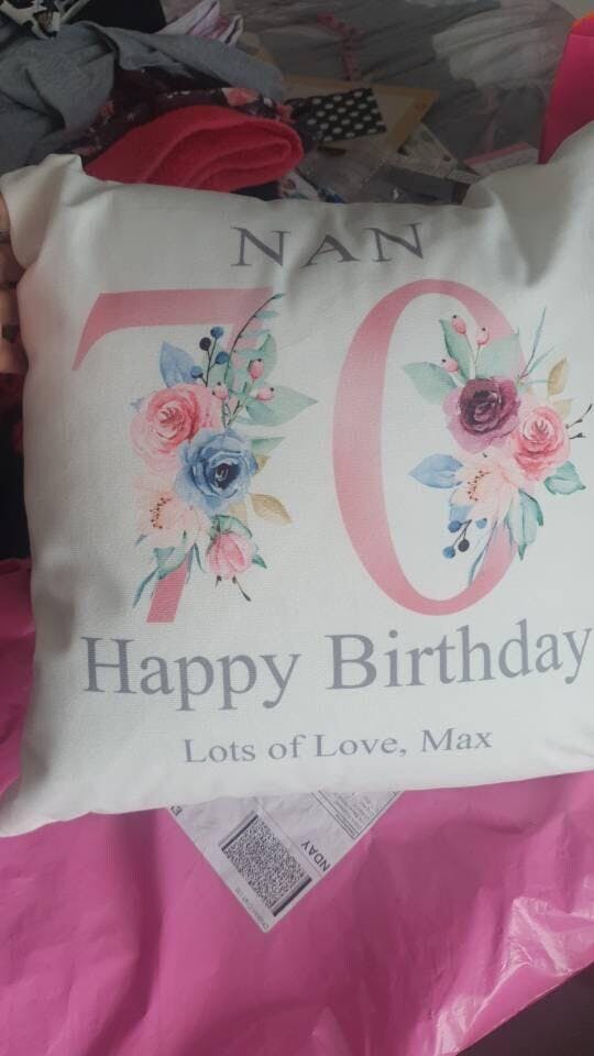 70th Birthday Gift for Women, Personalised Cushion / Pillow for Nanny with Floral Design