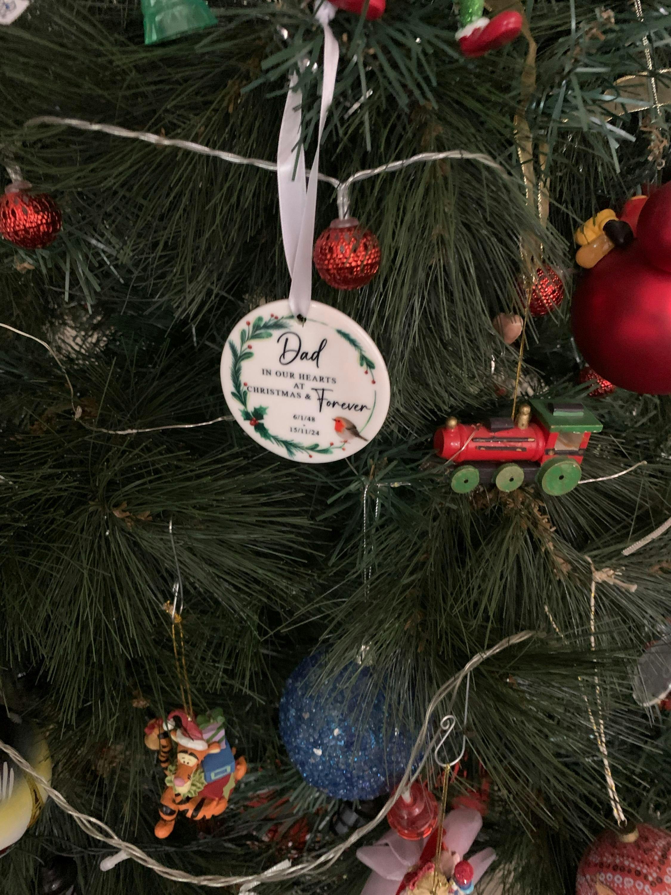 This ornament isn’t just a decoration - it’s a memorial to honour the life of someone special. Its timeless robin design and heartfelt message make it a comforting piece for the holiday season.