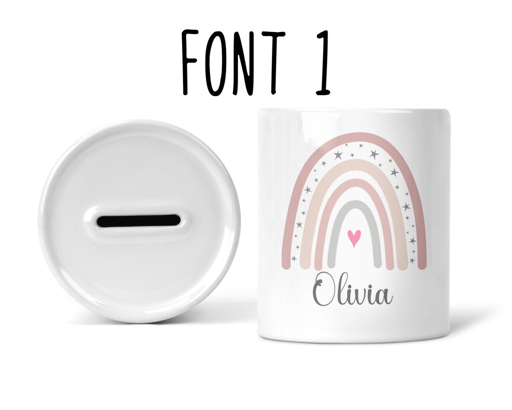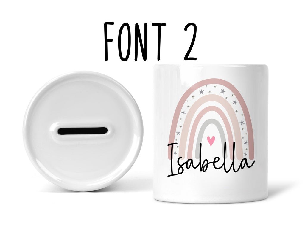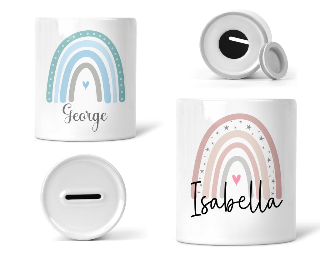 This beautiful ceramic money box is a lovely gift that children will love. It would look great in a, child's bedroom or nursery. A lovely piece of rainbow, themed decor from our pastel rainbow range.