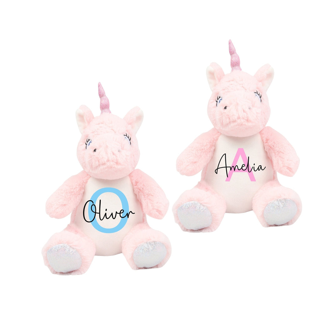 Personalised Unicorn Soft Toy For Babies, with Name and Initial, Suitable for Boys and Girls