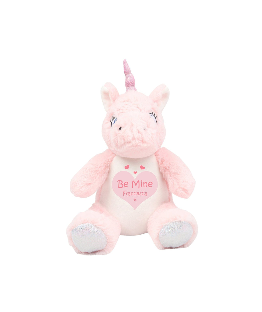To personalise just enter the Name that you would like to be printed onto the Unicorn teddy into the personalisation box provided. We automatically add "Be Mine"